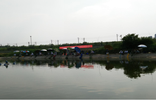 比賽當天氣溫高達三十六七度,盡管如此,后勤工作人員在正午時分就到達比賽現(xiàn)場開始了準備工作。下午三點半,參加比賽的人員到場后開始抽簽、找釣位、試水。隨著裁判宣布比賽開始,參賽人員立即全身心投入到比賽中去,在大自然的懷抱里,大家放松心情,忘卻平日里的工作勞頓,沉浸在寬松、愉快的氣氛中,一邊互相交流著垂釣經(jīng)驗,一邊互相收桿抄魚,樂此不疲。